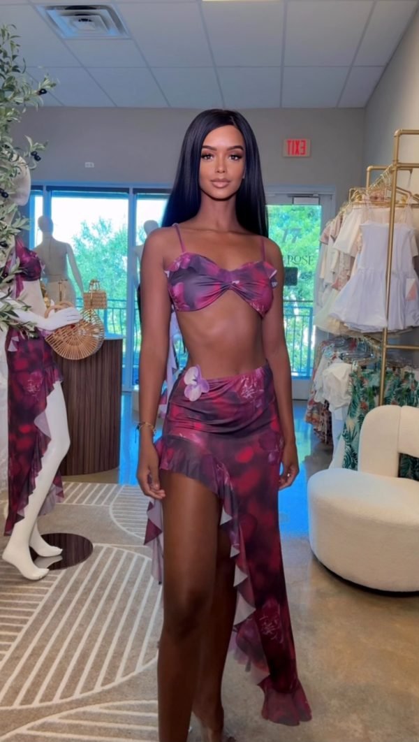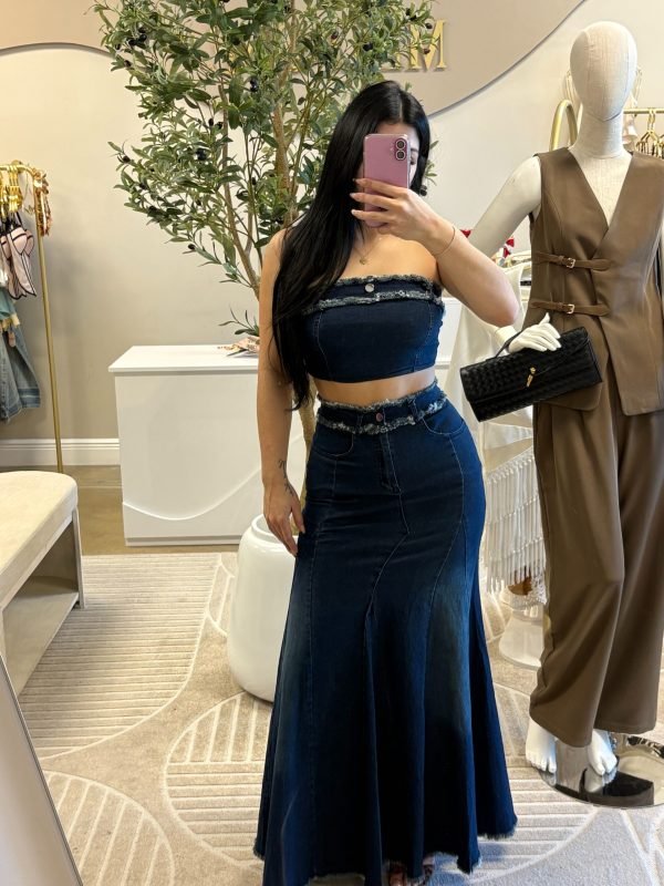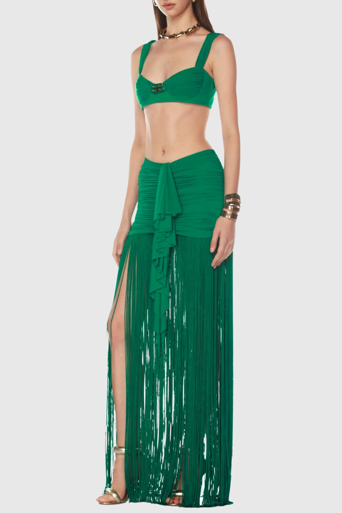 Sleeveless Beaded Crop Top y Satin Skirt Set
