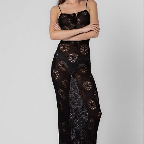 Maxi dress black with embroidery