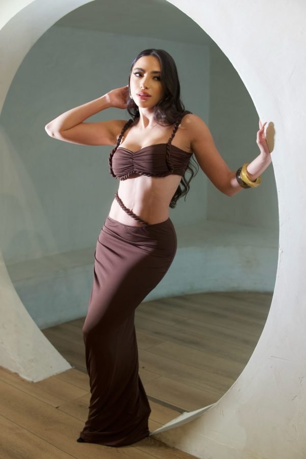 Be the first to review “knitted button-down top and pleated skirt set”