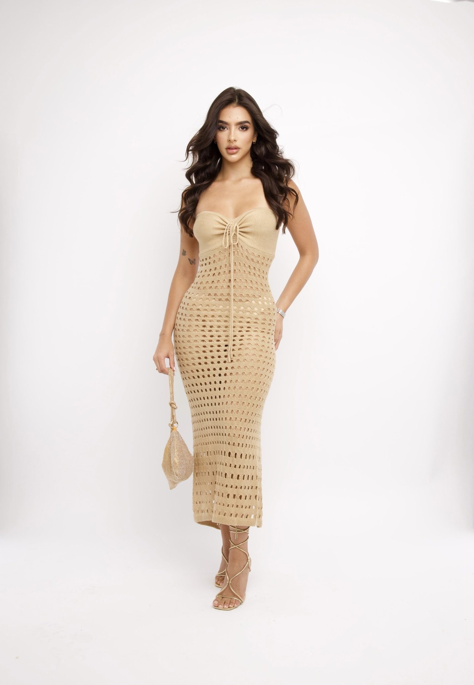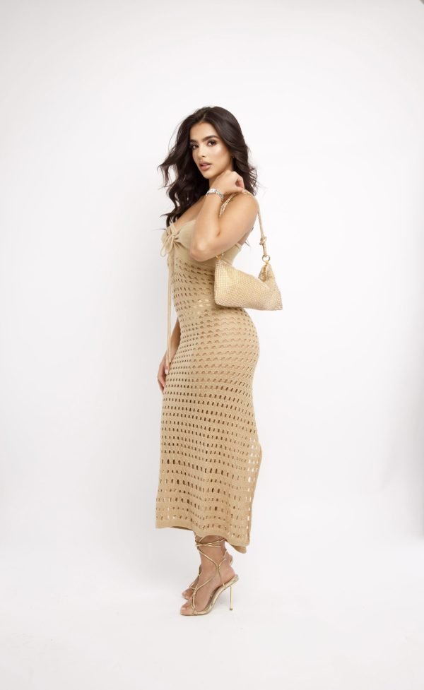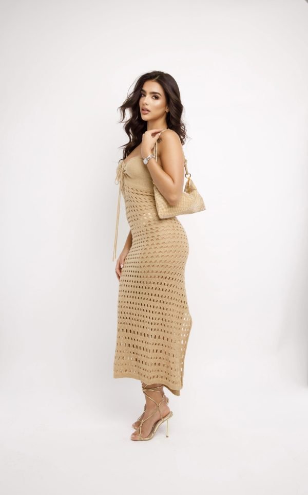 Be the first to review “Knitted crochet halter long dress – taupe”