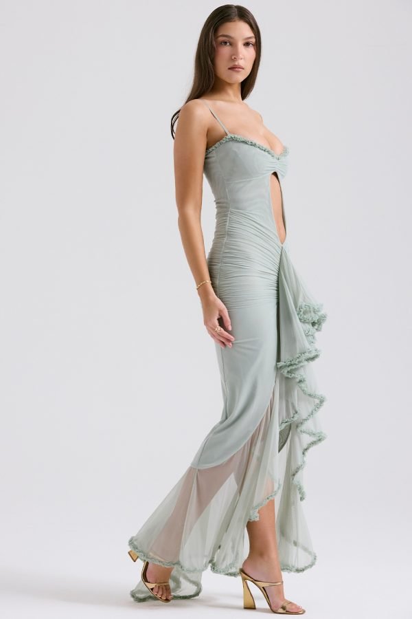 Pistachio colored dress with ruffles