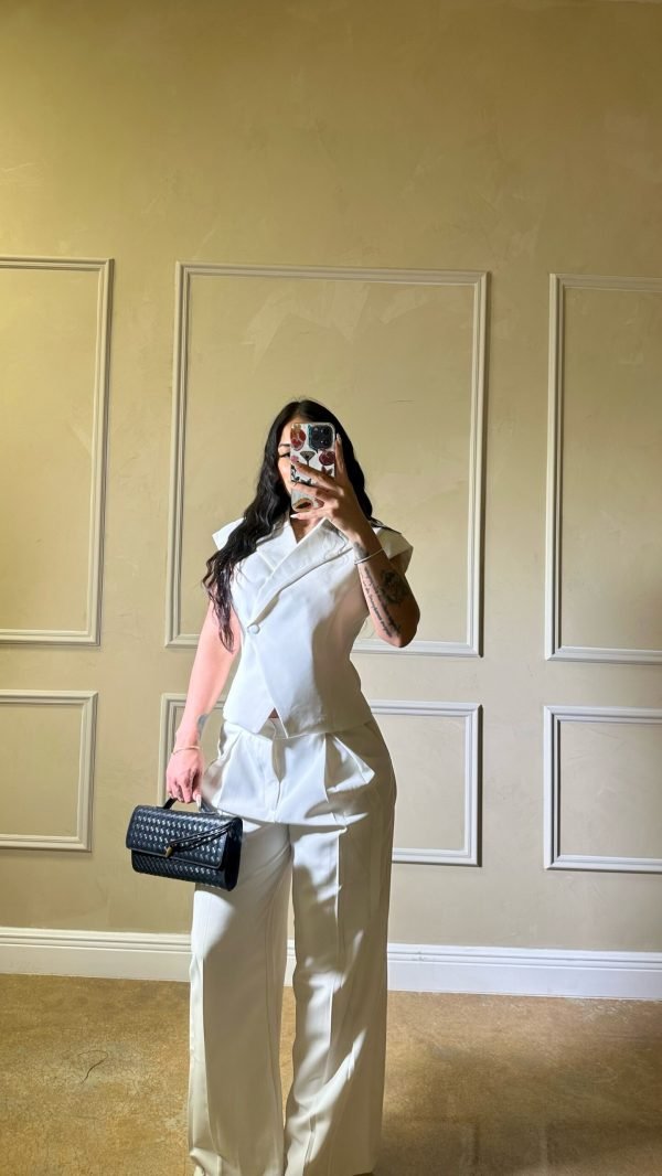 Blazer top and pants style set -ivory