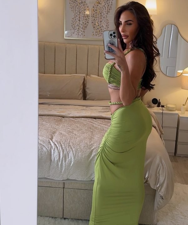 Be the first to review “Two-Piece Set Top And Skirt With Side Slit And Drawstring – Green”